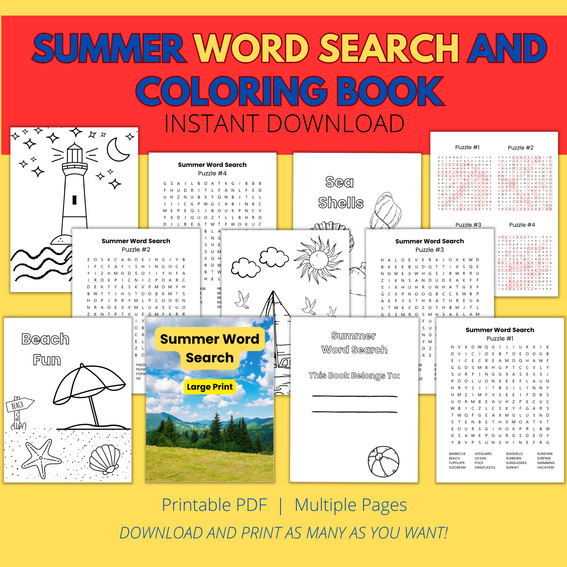 Unleash the joy of summer with our delightful Printable Kids Summer Activity Coloring and Word Search Book! Perfect for children aged 5 and up, this engaging activity book combines fun activities and word searches with the creativity of coloring, making it an ideal companion for sunny days, road trips, or quiet afternoons at home.
